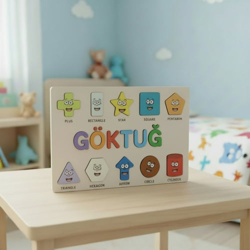 Montessori Ahşap İsme Özel Puzzle 10 Figür İngilizce Şekiller